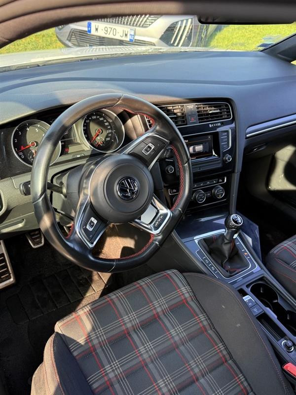 À vendre une Volkswagen Golf GTI en très bon état. Cette GTI VII 2.0 TSI 220 BLUEMOTION TECHNOLOGY GTI 5P roule à l'essence et est équipée d'une boîte mécanique. Elle propose un équipement complet avec 8 haut-parleurs, ABS, aide au démarrage en côte, climatisation 2 zones, airbags latéraux, phares bi-xénon, antibrouillards avant, antipatinage, assistance au freinage d'urgence, et bien plus encore. Avec seulement 84 000 km au compteur, elle est loin d'être une voiture ordinaire. Mise en circulation en mars 2016, elle est équipée de nombreux équipements comme le Bluetooth, ESP, essuie-glace capteur de pluie, indicateur de sous-gonflage des pneus, lave-phares, limiteur de vitesse, ordinateur de bord, phares à allumage automatique, pré-équipement téléphone, réglage du volant en hauteur et en profondeur, régulateur de vitesse adaptatif, rétroviseur jour/nuit, rétroviseurs extérieurs chauffants, rétroviseurs extérieurs réglage électrique, système audio incluant DVD, système audio lecteur CD et MP3, système de navigation et système de détection de collision. Pour seulement 18 990 €, c'est une bonne affaire à saisir rapidement.